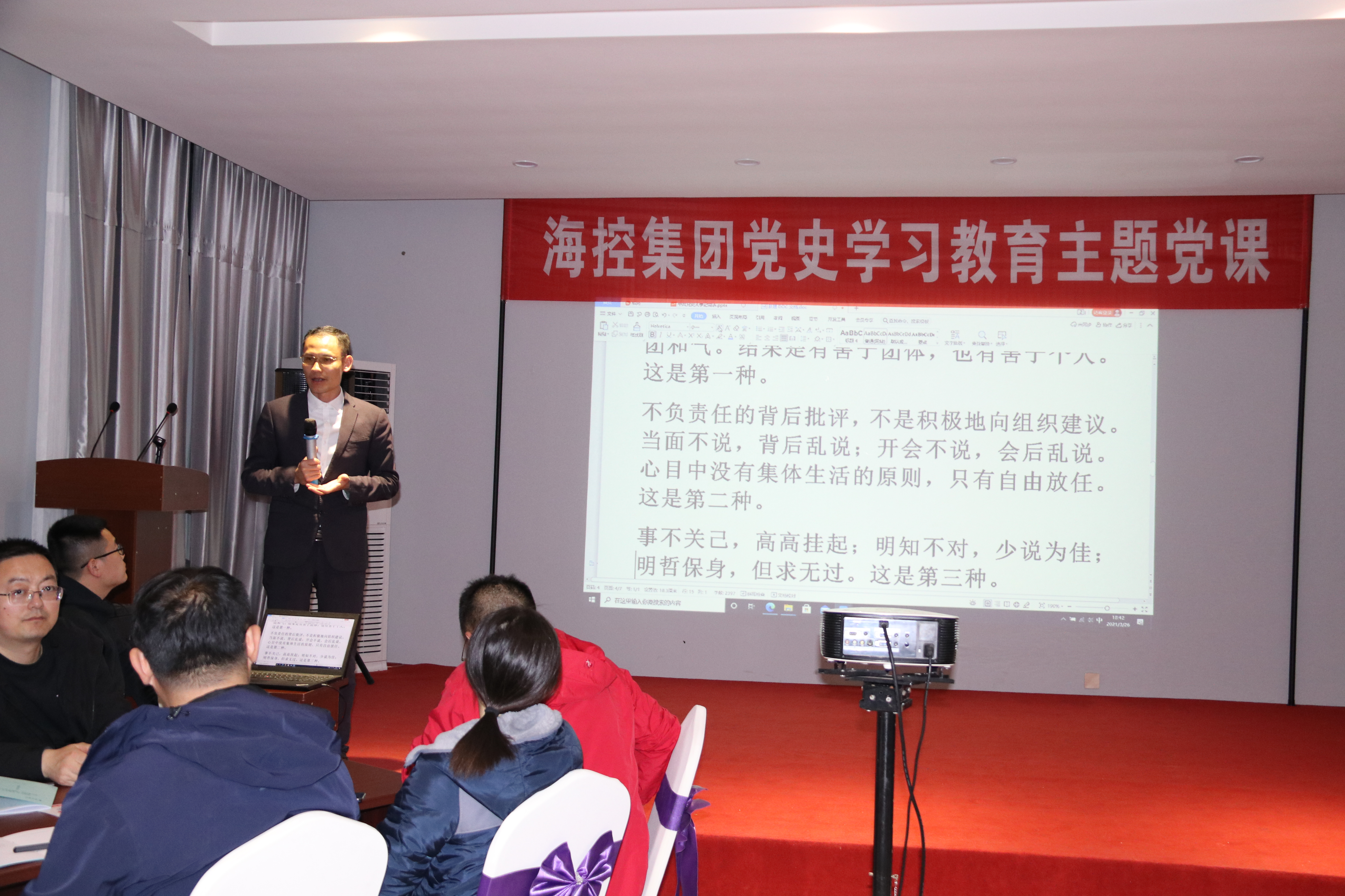 為深入開展黨史學習教育,引導廣大黨員干部知史愛黨、知史愛國,真正達到學史明理、學史增信、學史崇德、學史力行的目的,3月26日,??丶瘓F開展黨史學習教育主題黨課,集團各支部全體黨員干部職工參加。