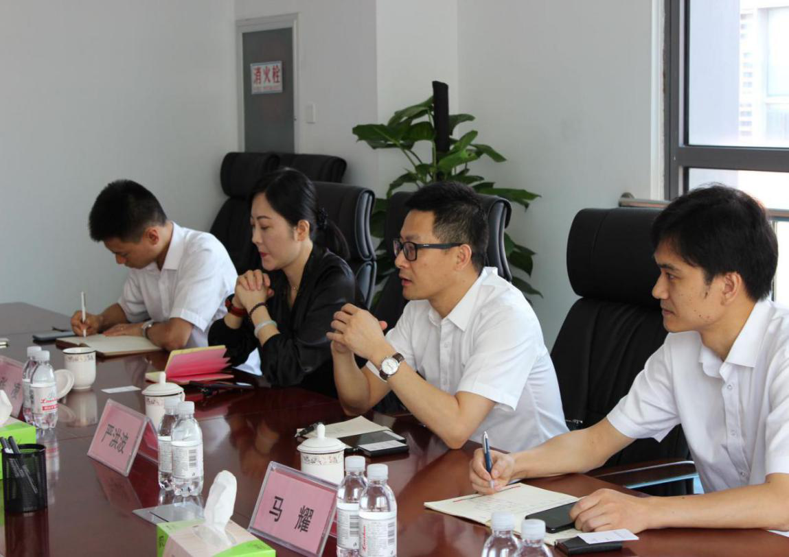 陪同人員首先向嚴(yán)總一行介紹了一樓交易大廳的具體情況和后期業(yè)務(wù)開展計劃。隨后雙方前往會議室進(jìn)行座談交流。