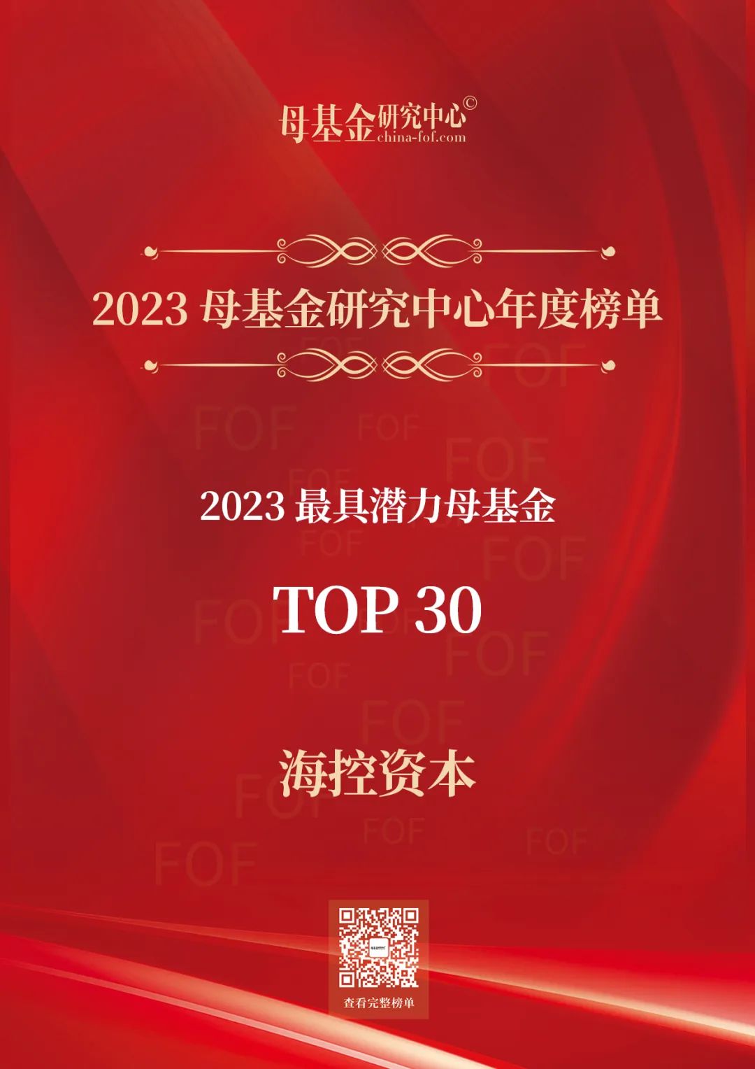 2023年12月11日,2023母基金研究中心年度榜單隆重揭曉,??刭Y本獲評「2023年最具潛力母基金TOP30」。