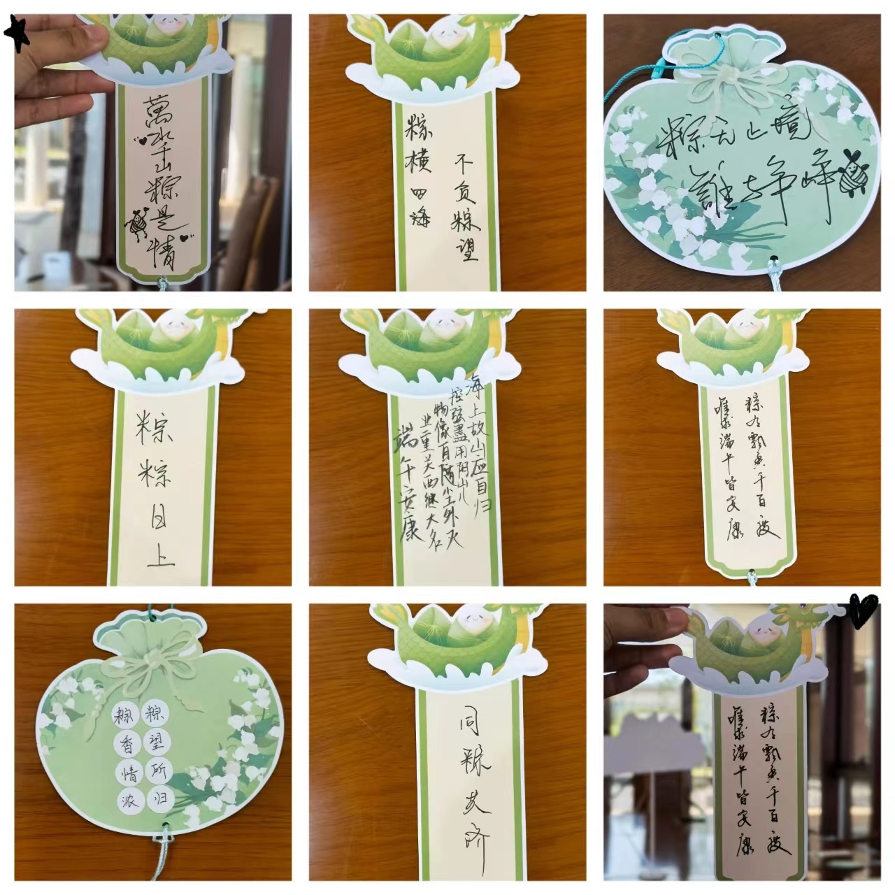 筆架沾窗雨,書(shū)簽映隙曛。以“粽”字書(shū)寫(xiě)端午印象,大大小小的書(shū)簽匯成書(shū)香海,增添端午書(shū)香氛圍~